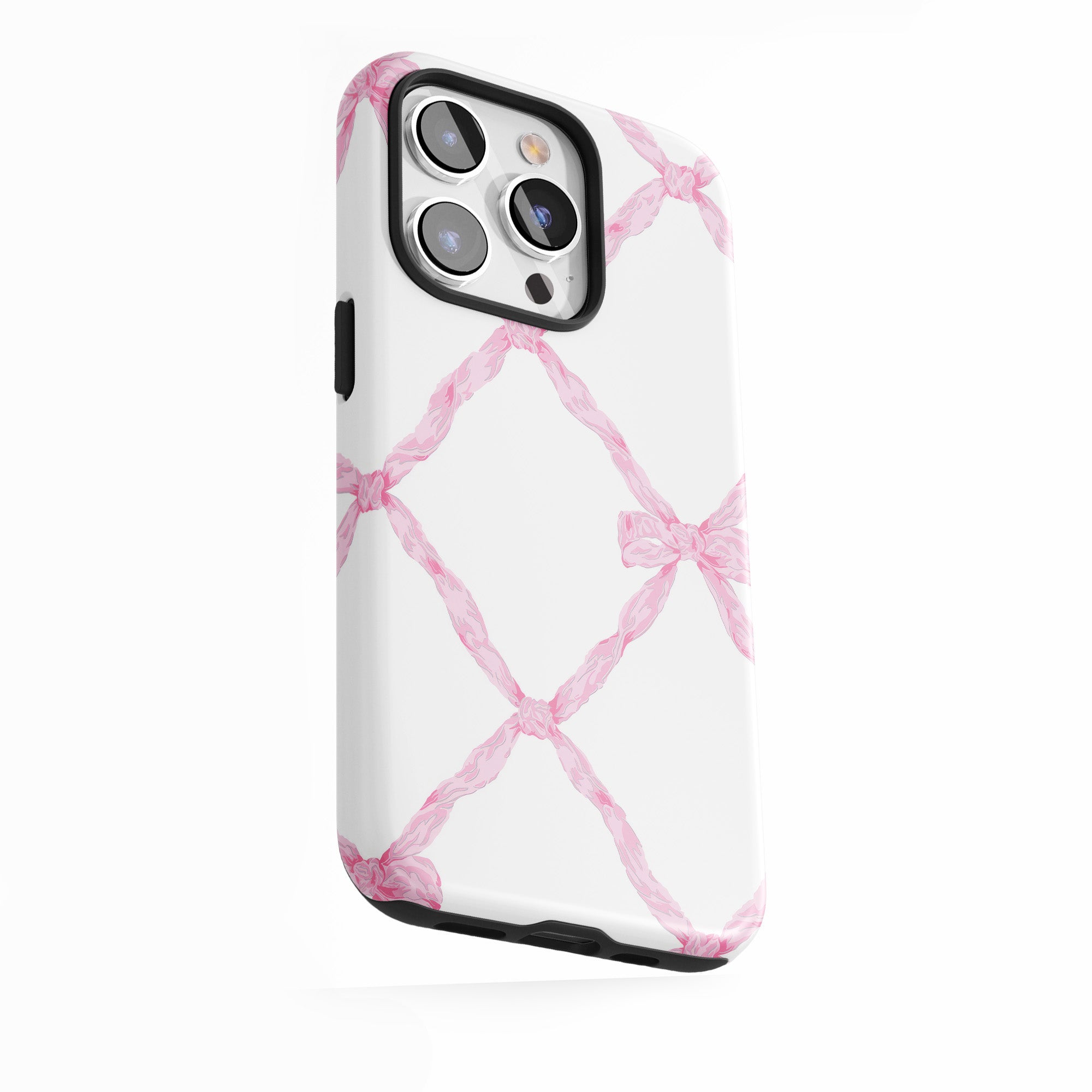 Soft pink lattice pattern with ribbons for a classy, feminine vibe.